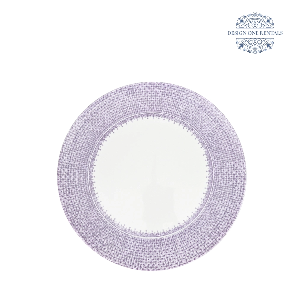 The Trieste Pink Charger Plate features a soft blush tone with a refined dotted pattern that radiates gracefully toward the center. Its subtle texture and romantic hue make it a perfect choice for weddings, bridal showers, or upscale garden events. Designed for event planners and party rentals, this charger plate pairs beautifully with our Antique Lavender Collection for a polished, timeless tablescape. A stylish addition to modern and classic event themes alike.