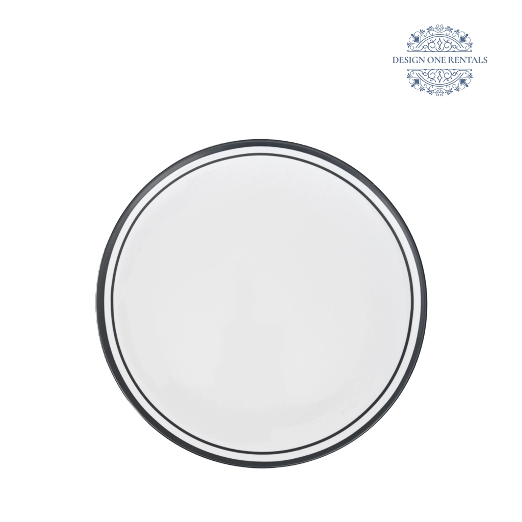 The Edge Nero Charger Plate features a crisp white base framed by a bold double black rim, offering a refined and contemporary style. Its minimalist design makes it a versatile addition to modern, formal, or monochrome-themed events. Perfect for weddings, galas, or corporate gatherings, this charger plate adds a sleek and balanced touch to any table setting. Pair it best with our Duchess Faces II for a sophisticated presentation.