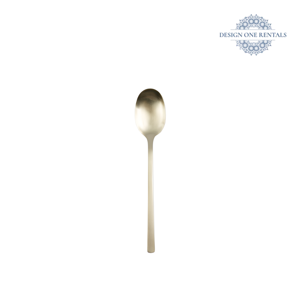 The Chelsea Champagne Gold Collection flatware features ultra-slim, linear handles with a satin champagne gold finish, pairing beautifully with our Paloma Collection for sleek formal tables.