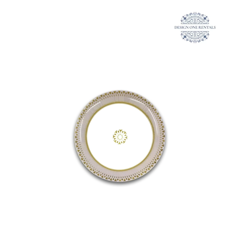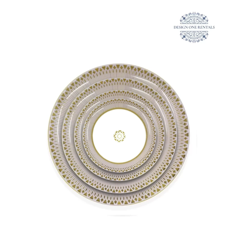 The Paris Lilac Collection features tiered plates with sunburst lilac striations, crown-like gold geometric bands, and a fine metallic rim, styled with Allora Champagne flatware, Crystal Cut Clear glassware, and ivory or blush linens for luxury weddings, engagement parties, and formal galas.
